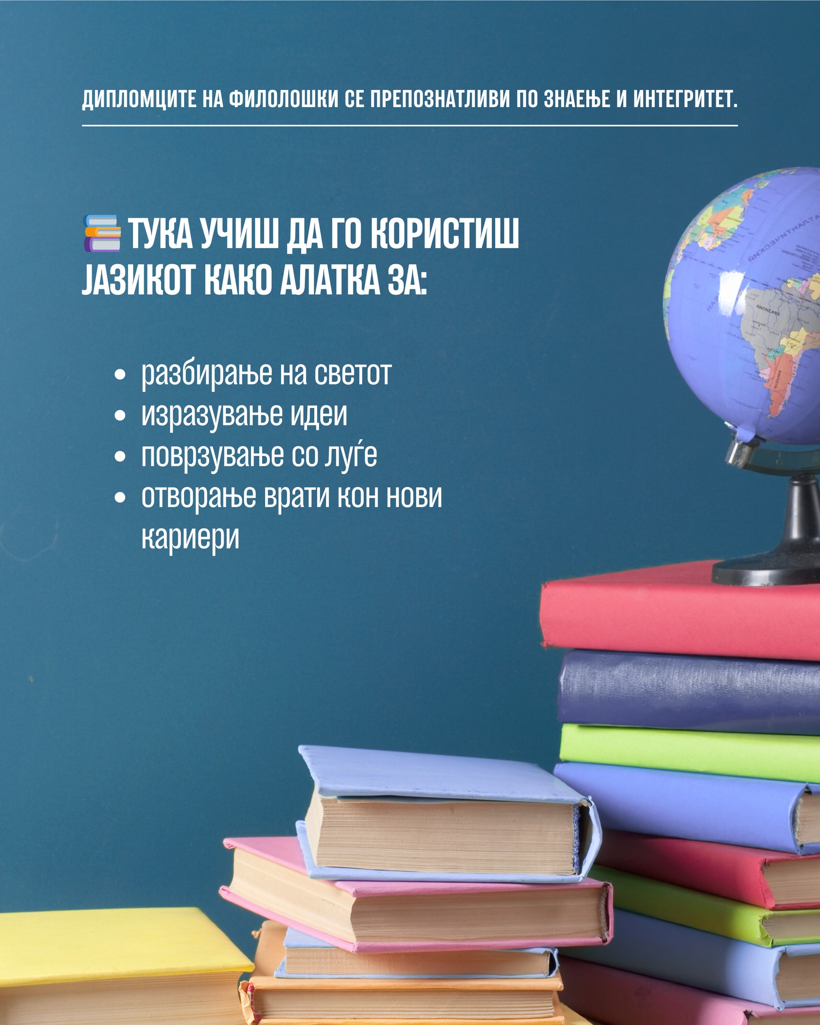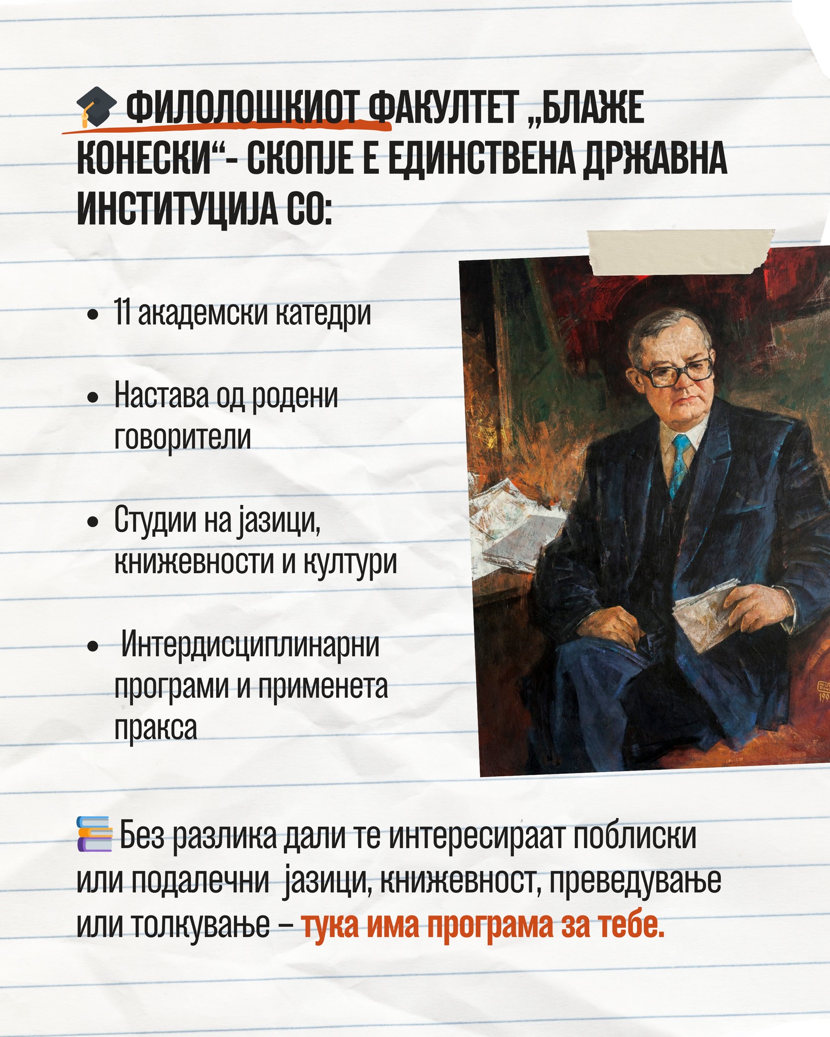 Филолошкиот факултет „Блаже Конески“ – Скопје врши проверка на знаењето на македонскиот, албанскиот, турскиот, англискиот, германскиот, италијанскиот, францускиот, словенечкиот, хрватскиот, шпанскиот и на други јазици.